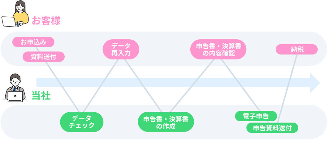 当社サービスは、法人決算代行サービスになりますので、顧問契約は一切不要です。毎年申告のみご利用いただくお客様も多くいらっしゃいます。